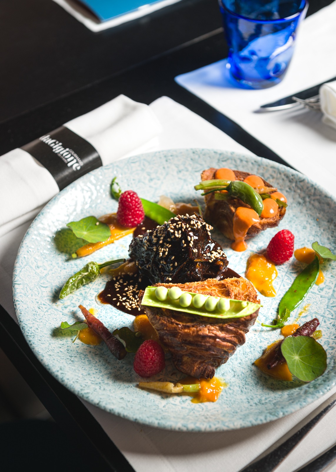 La nostra sfera di carne Wagyu giapponese, ripiena di caviale, mandorle e uva